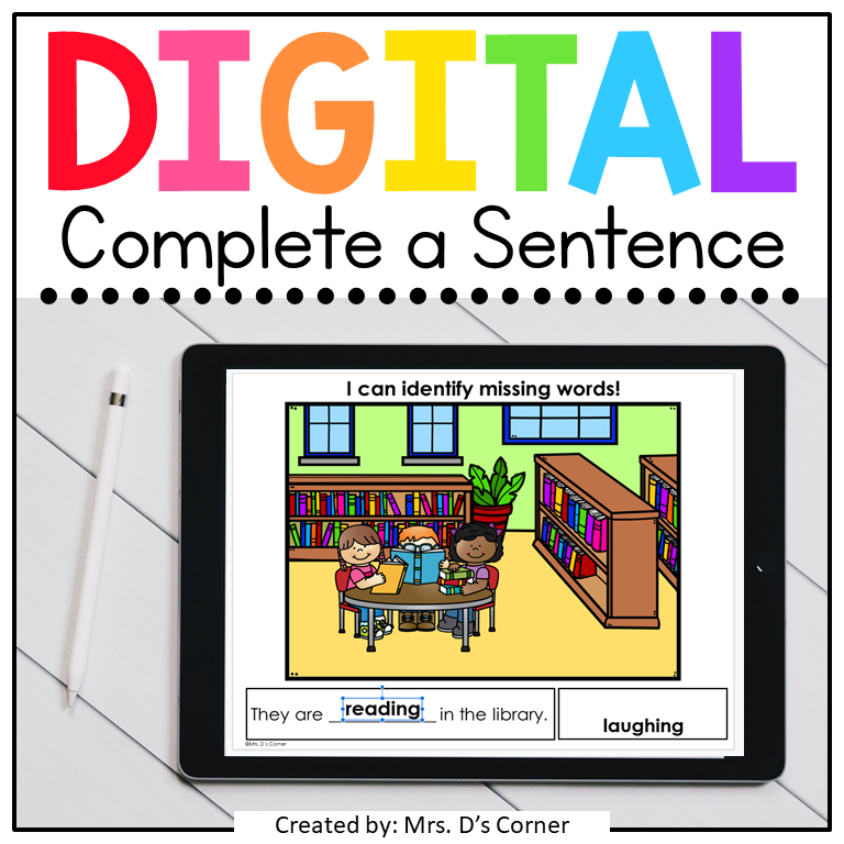 MISSING WORDS DIGITAL | Functional, differentiated, and now PAPERLESS skill work that is the perfect addition to your early learning rotations and centers. This digital basics set of workpages will help your students practice basic skills, and once mastered, can be a set of skills they complete successfully and independently.