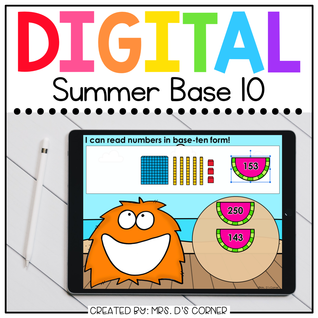 Summer Place Value - 21 pages - 1 activity - count the base 10 blocks then feed the number to the monster