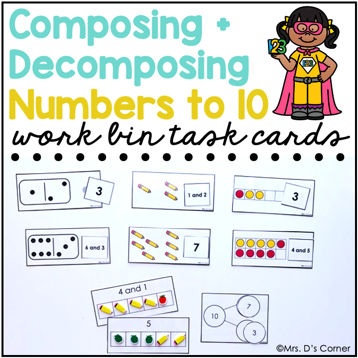 - Composing and decomposing numbers to 10 (task boxes come with answer cards for composing and decomposing numbers)