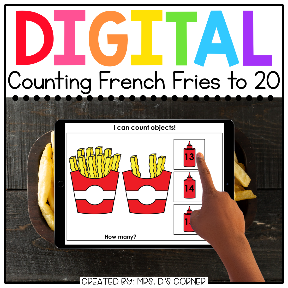 COUNTING FRIES 0 TO 20 DIGITAL | Functional, differentiated, and now PAPERLESS skill work that is the perfect addition to your early learning math rotations and math centers. This digital basics set of 1:1 correspondence workpages will help your students practice basic math skills, and once mastered, can be a set of skills they complete successfully and independently.