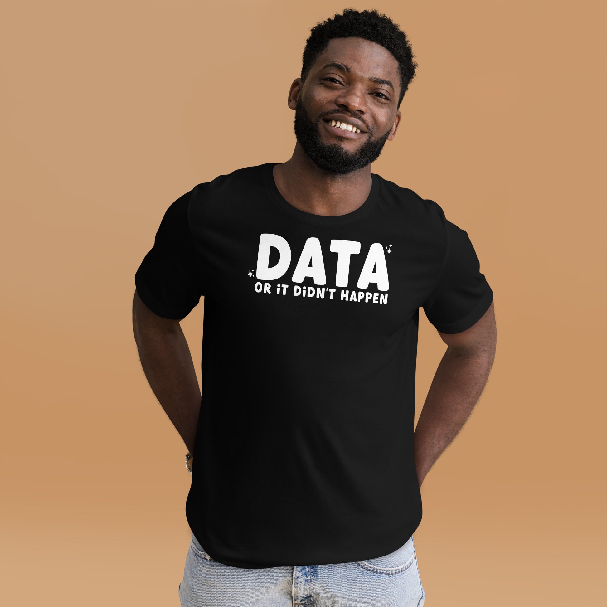 Data or It Didn't Happen teacher tee shirt in the popular and comfortable Bella Canvas brand.