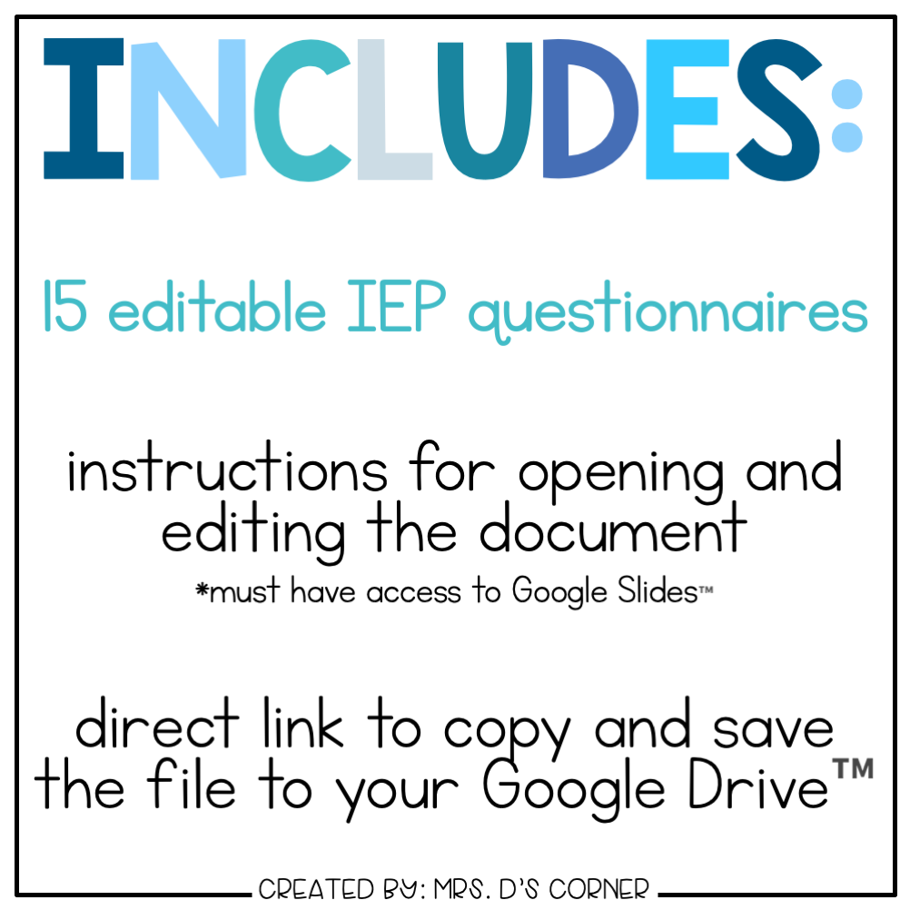 - IEP Toolkit Forms - 3 forms (parent, teacher, student)