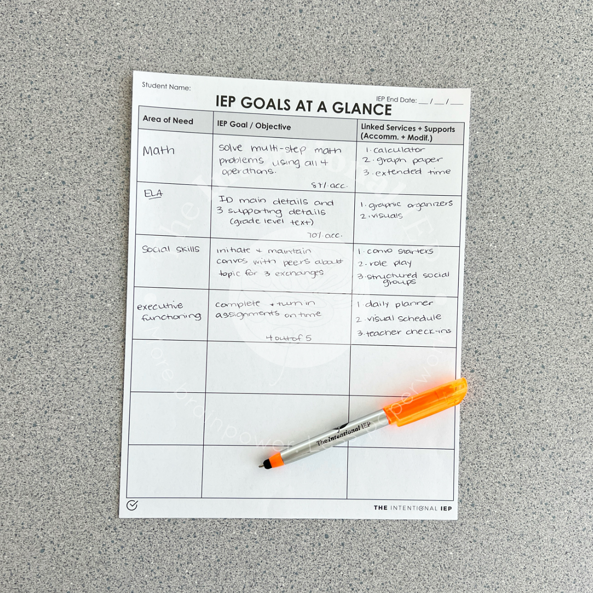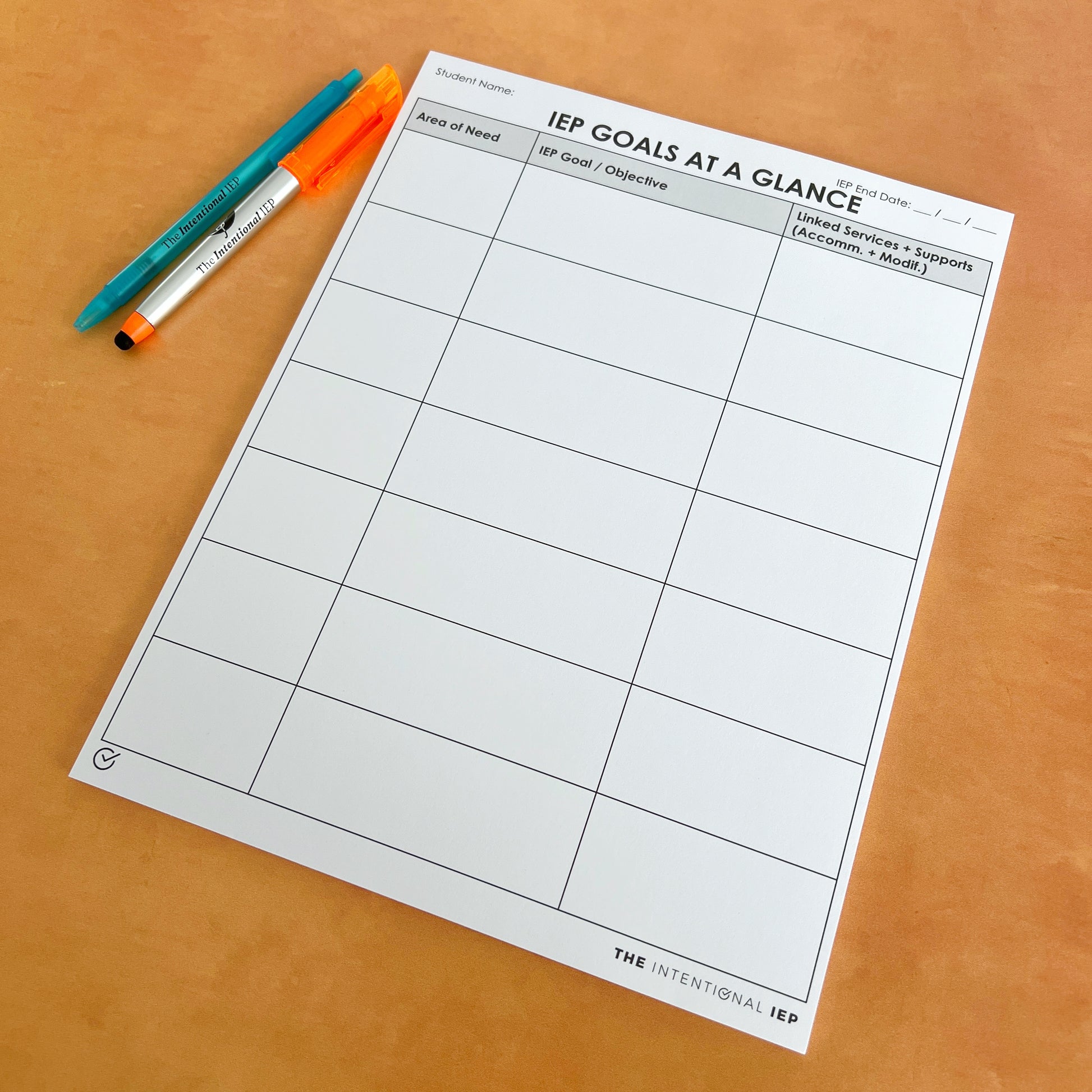 With this IEP Goals At a Glance notepad, you can track your student's IEP goals and the supports and services related to those specific goals and area of need.