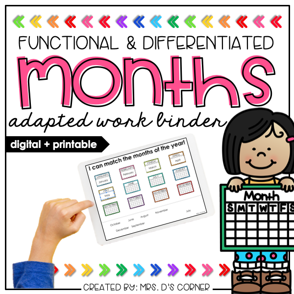 DIGITAL + PRINTABLE ADAPTED WORK BINDER® • Functional and differentiated skill work that teaches students about the months of the year, this adapted work binder® is the perfect addition to any elementary special education classroom or homeschool curricula.