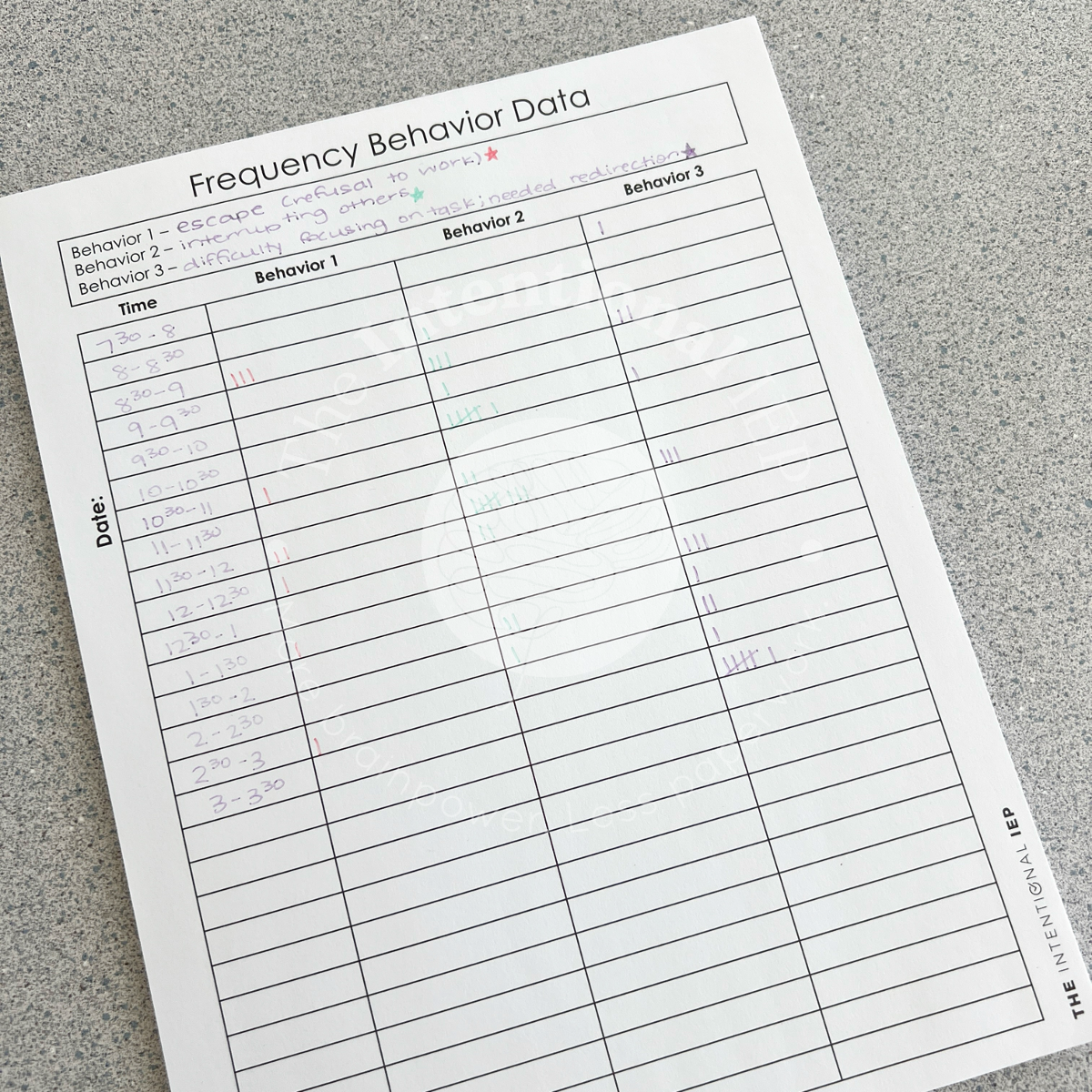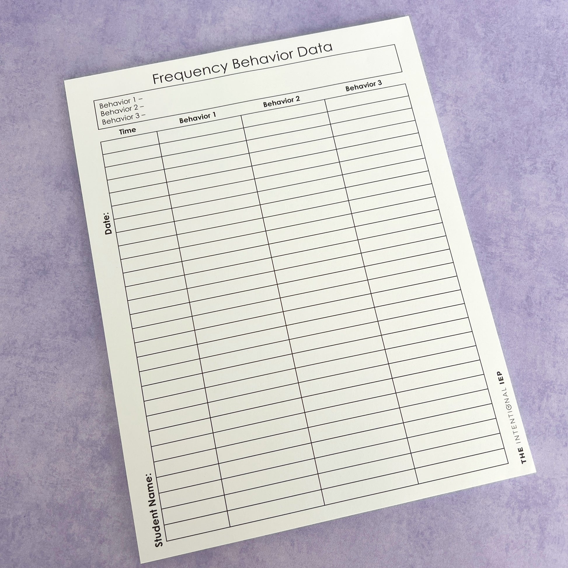 With this Frequency Behavior Data notepad, you can track up to 3 student behaviors during specific times of the day by using a simple tally mark system.