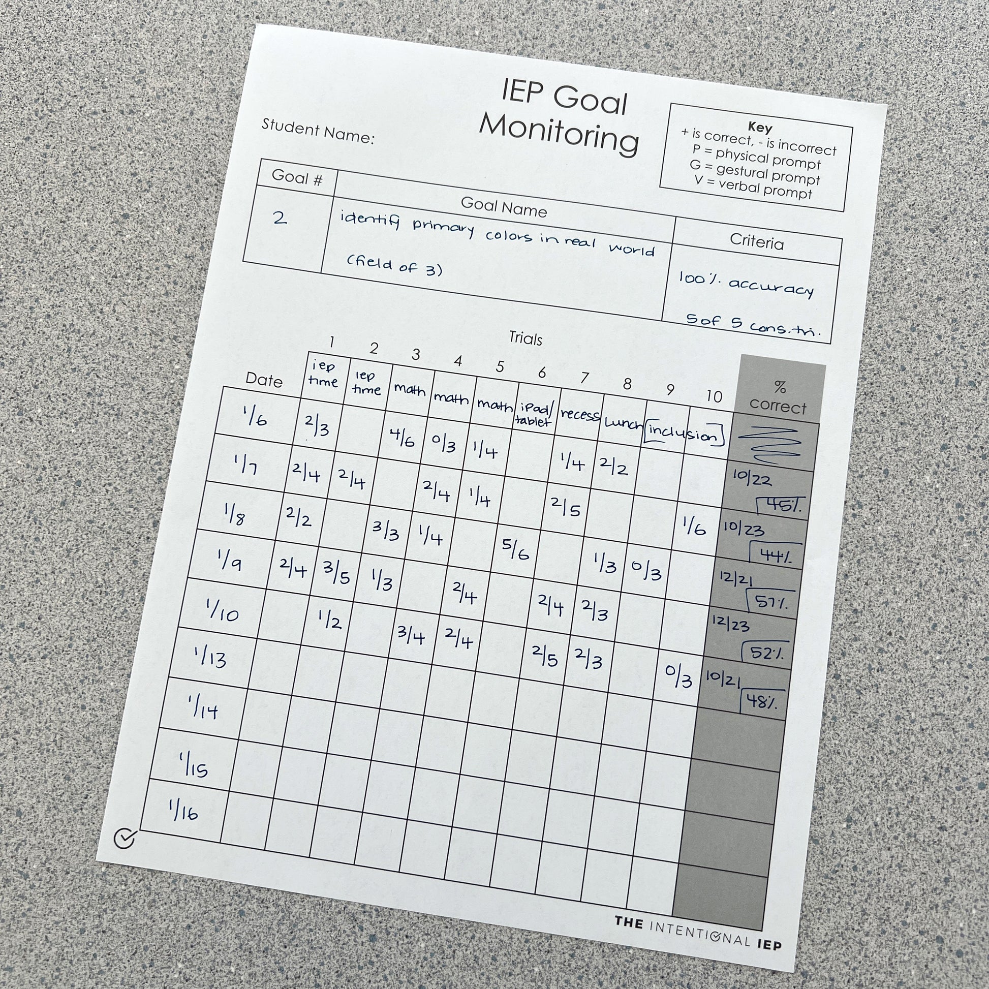 IEP Goal Monitoring Data Notepad | 50 Sheets
