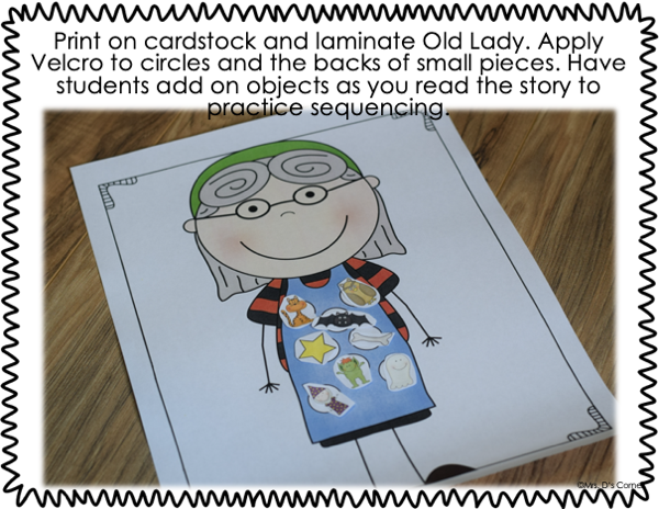 You can read this blog post here to read more about how I used these same activities with the Old Lady Swallowing a Frog.