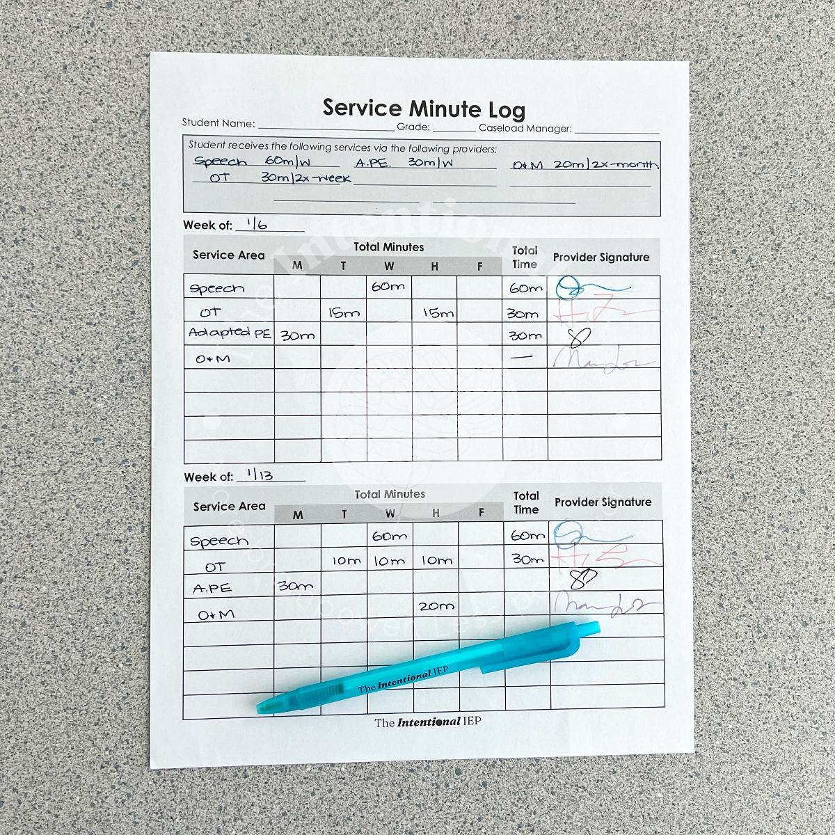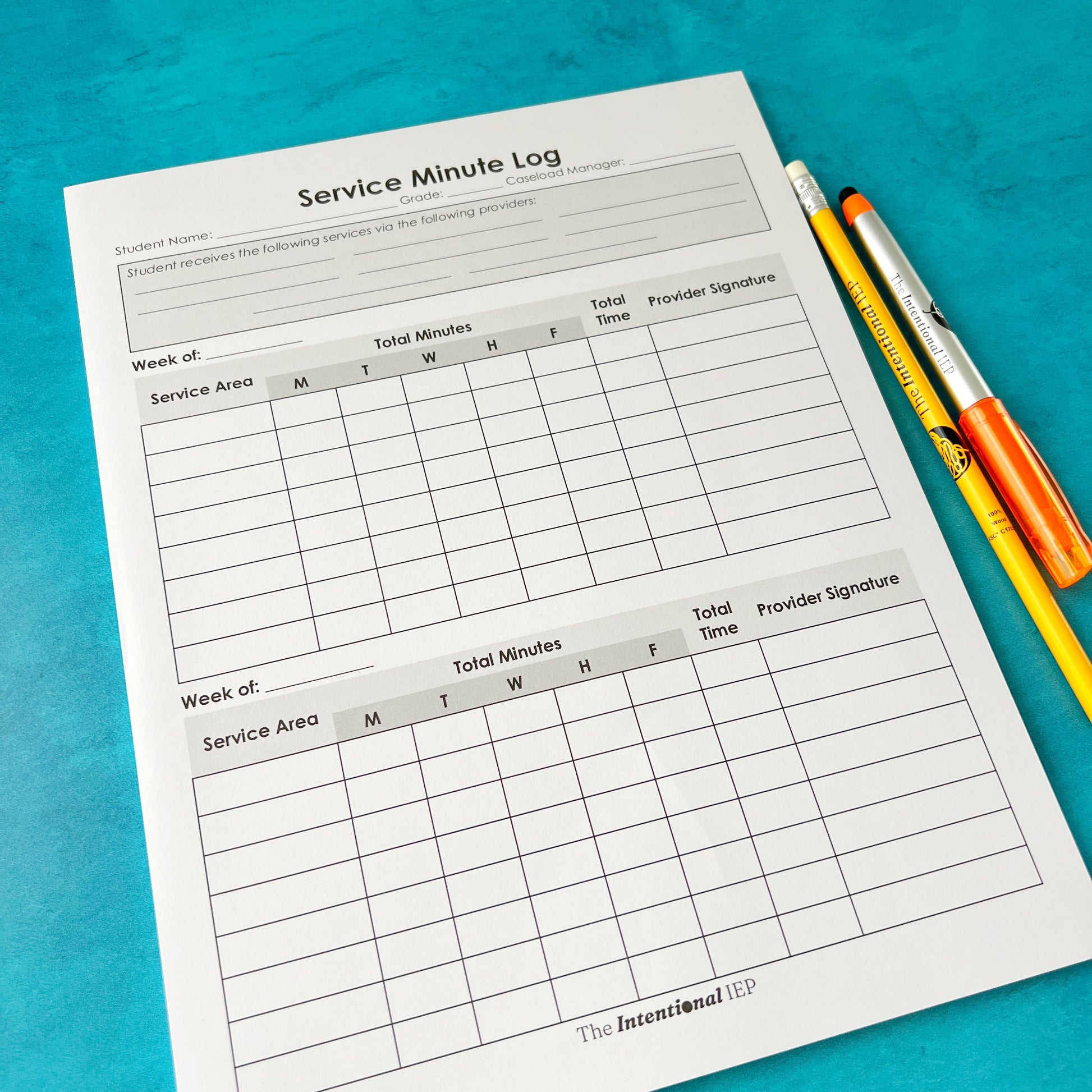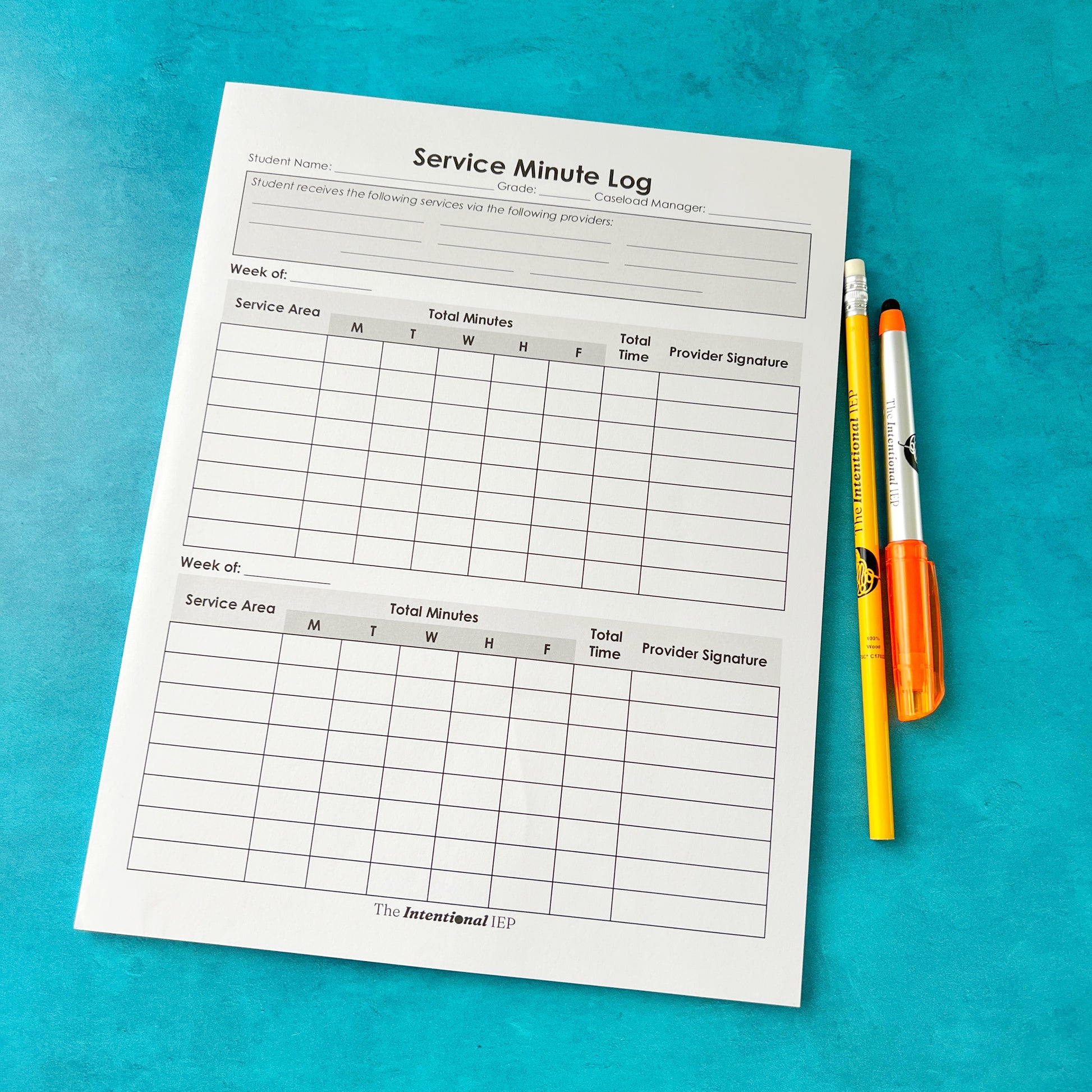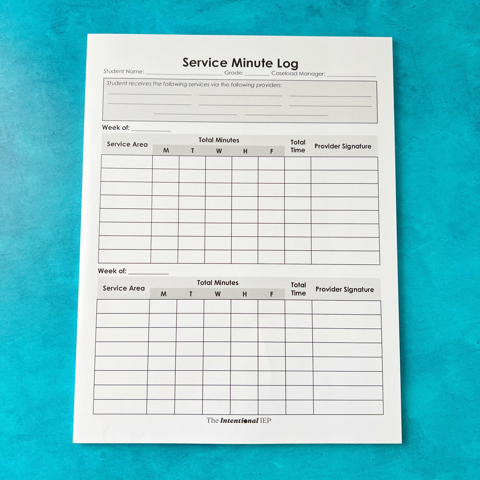 With this Service Minute Log data notepad, you can effectively take data on what service area student's are receiving special education minutes in, how many minutes each day in that service area, the total time, and who is providing the service minutes... which is all key data for an IEP.