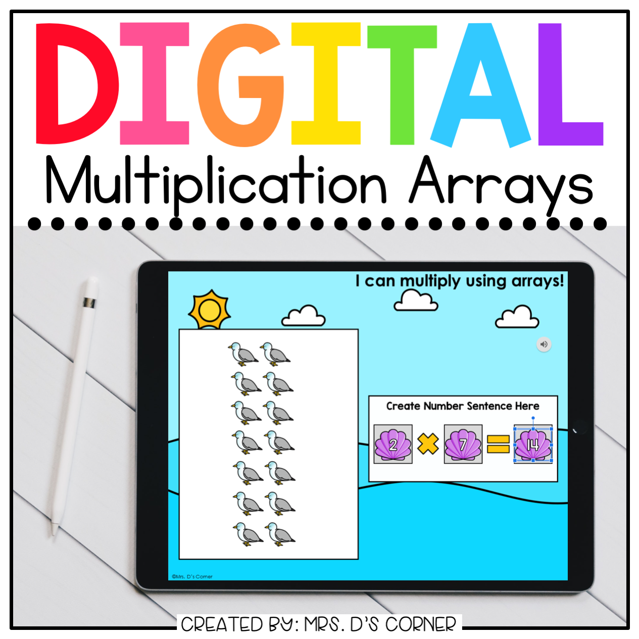 MULTIPLICATION ARRAYS DIGITAL | Functional, differentiated, and now PAPERLESS skill work that is the perfect addition to your early learning rotations and centers. This digital basics set of workpages will help your students practice basic skills, and once mastered, can be a set of skills they complete successfully and independently.