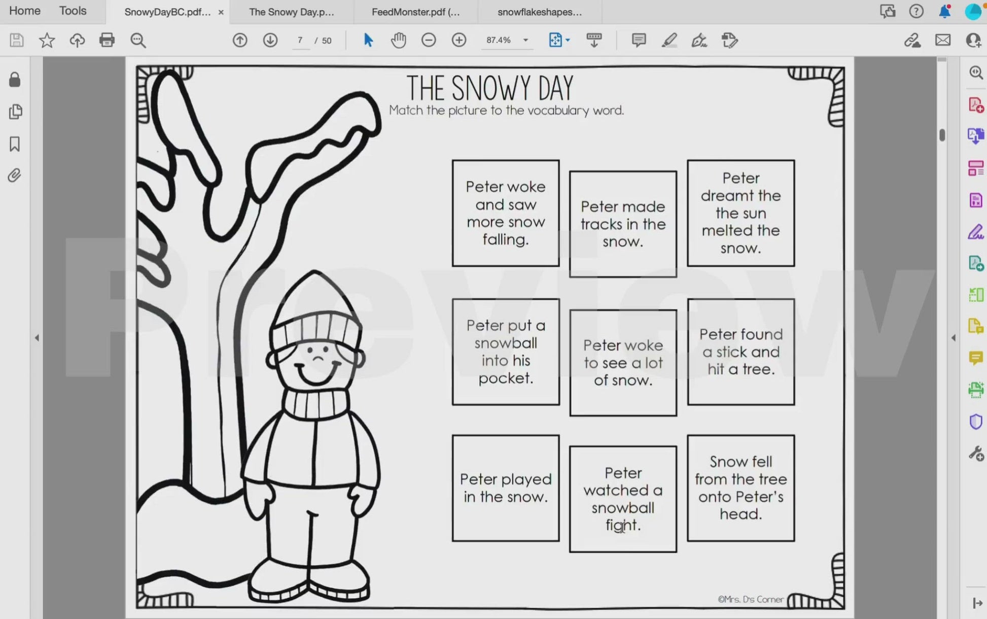 1. You will need to purchase the book The Snowy Day by Ezra Jack Keats to go along with the book companion.
